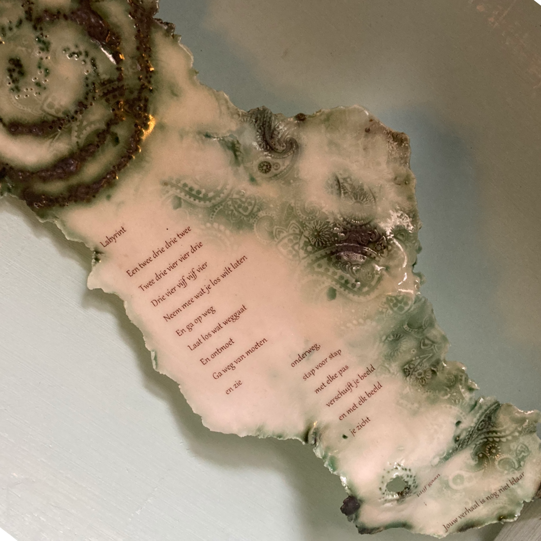 rafelrandjes, scheursels, print, letters, metaaloxides, rutiel, lusters, zilverwerk, porselein, steengoed, raku, elfenbankjes, dagdromen, eenzaamheid, natuur, taal, poëzie, lezen, boeken, familie, leven & dood, huis & tuin, aarde, kunst, musea, heyboer, klimt, gaudi, bewust zijn, afscheid, kleur, veranda, werkplaats, ondernemen, vrijheid, autonomie, ontwerpen, winkelier, pluk, verzinnen, anders, melancholie, kluizenaar, springen, ademloos, autonoom, gelukkig in groen